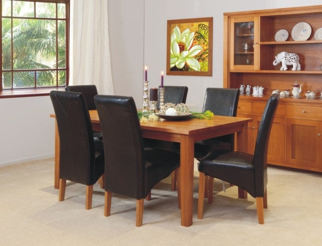 MOUNTAIN ASH 7 PIECE DINING SETTING WITH TAPERED LEGS AND 6 LEATHERETTE CHAIRS (DARK CHOCOLATE OR CREAM) - 1800(L) X 1000(W)