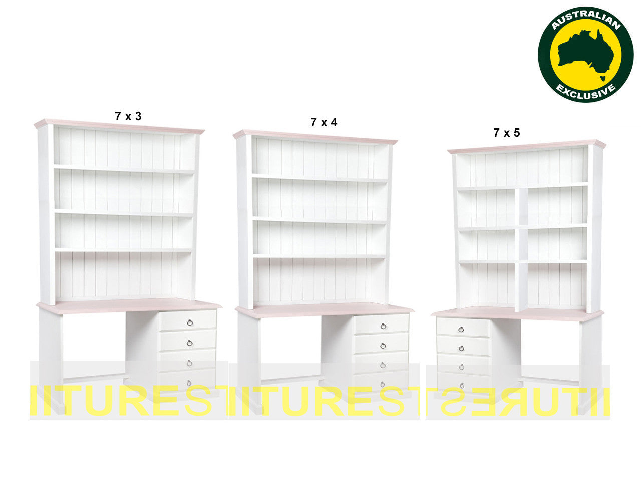 MUDGEE (AUSSIE MADE) 4 DRAWER DESK + HUTCH (REVERSIBLE) - ASSORTED PAINTED COLOURS - STARTING FROM $1099