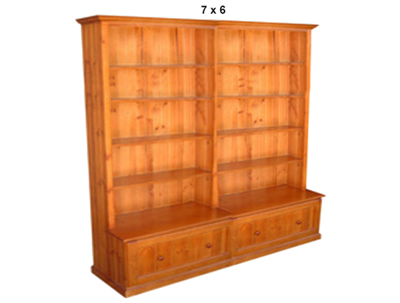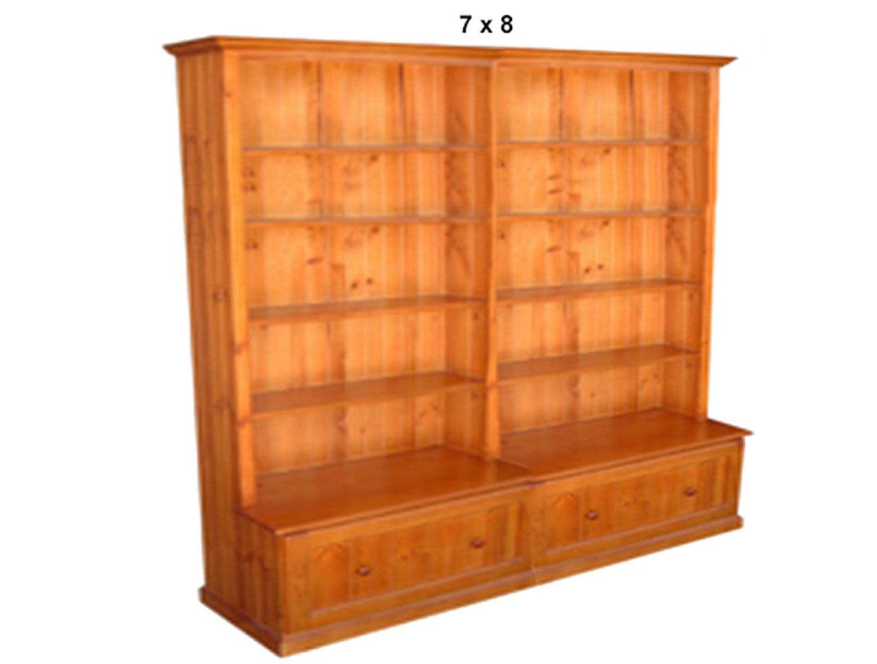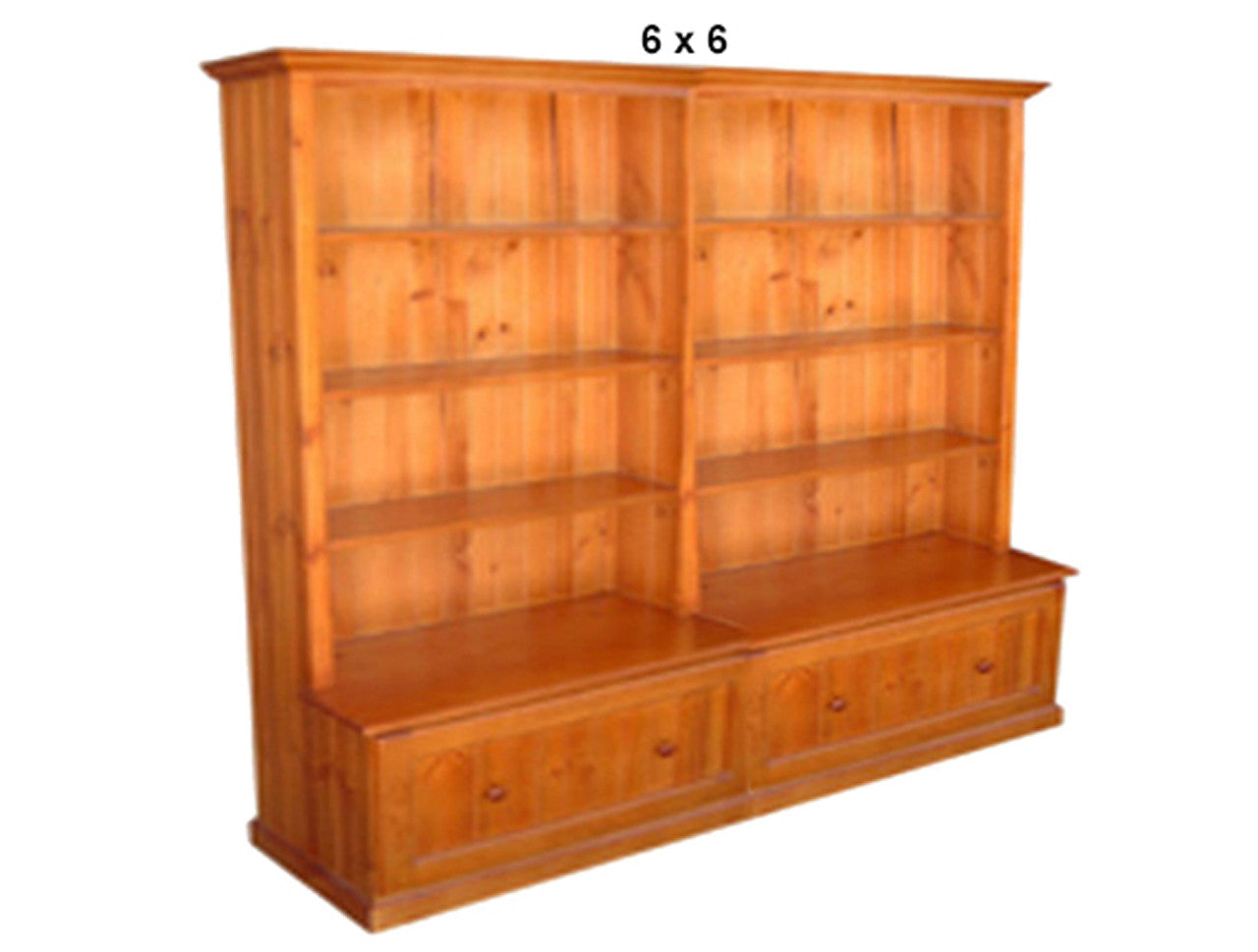 MUDGEE (AUSSIE MADE) BOOKCASE COMBO WITH 2 PULL OUT DRAWER COLLECTION - (3 SECTIONS) - ASSORTED STAINED COLOURS - STARTING FROM $1599