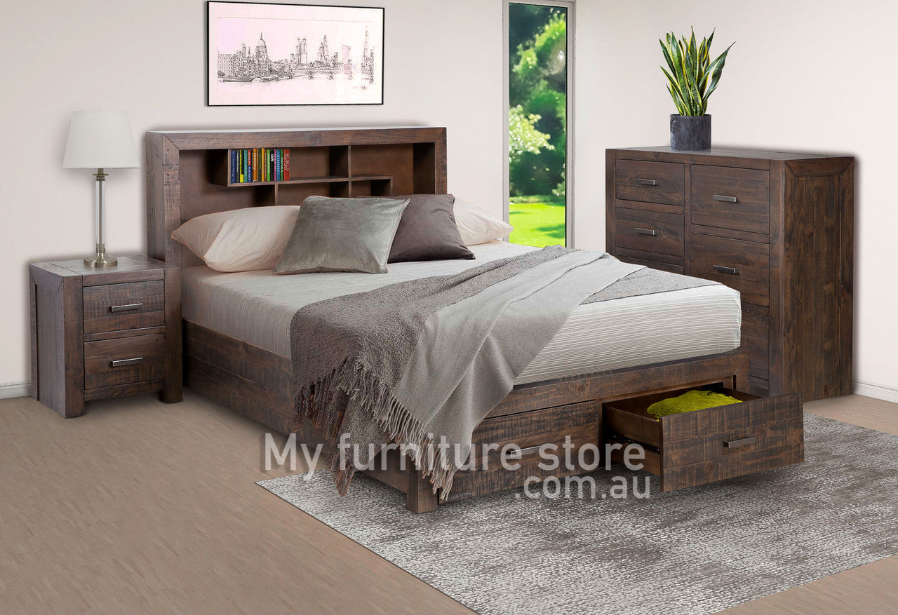 LISTINGS CONSISTS OF: 1x Bed , 2x Bedside Table , 1x Tallboy , 1x Dresser and 1x Mirror.