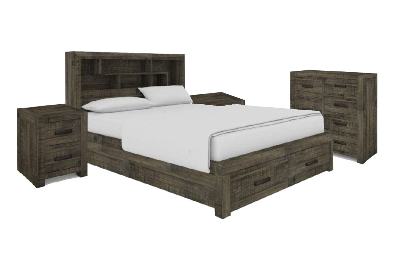 MUNICH QUEEN 4 PIECE (TALLBOY) BEDROOM SUITE WITH UNDER BED STORAGE - GREY STONE