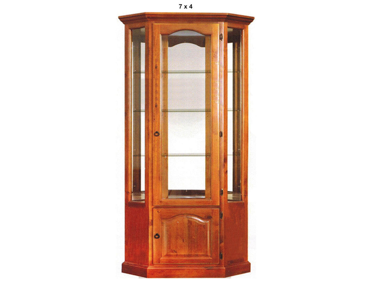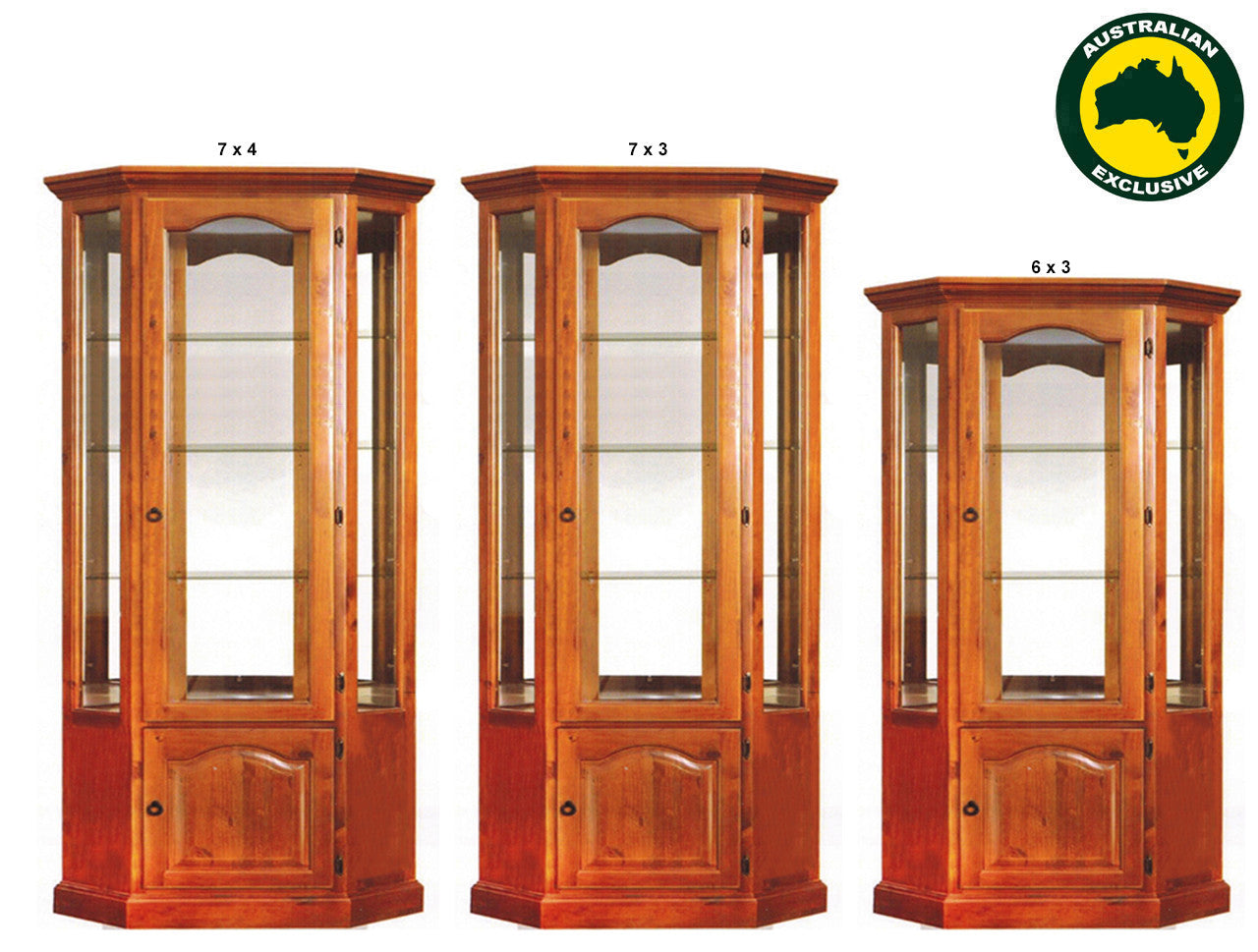 NEW YORK (AUSSIE MADE) CRYSTAL CORNER DISPLAY CABINET WITH MIRRORED BACK COLLECTION - ASSORTED STAINED COLOURS - STARTING FROM $1799