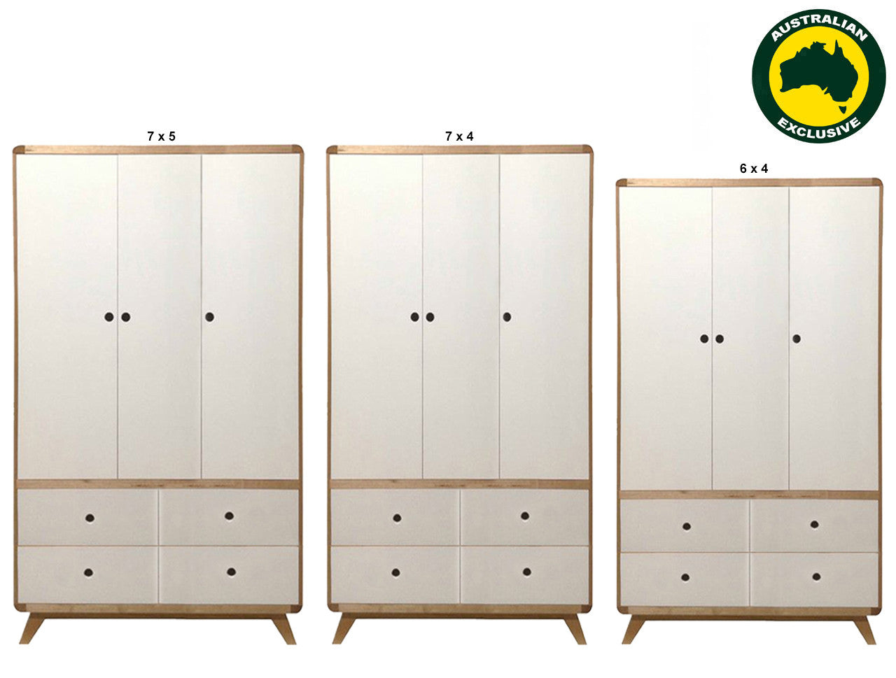 NORIC (AUSSIE MADE) 3 DOOR / 4 DRAWER WARDROBE COLLECTION - TASMANIAN OAK COMBINATION -ASSORTED PAINTED COLOURS - STARTING FROM $2199