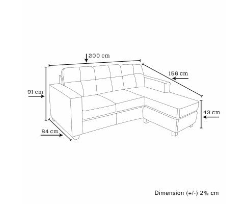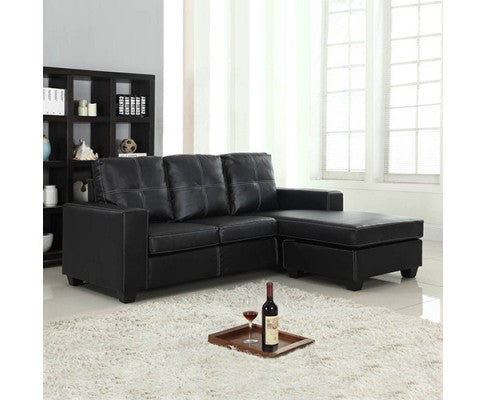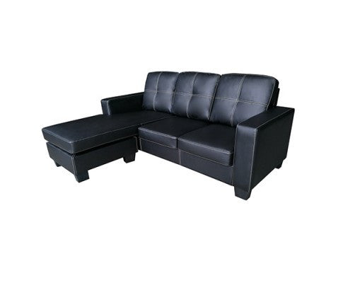 NOWRA LEATHERETTE SOFA WITH CHAISE - BLACK