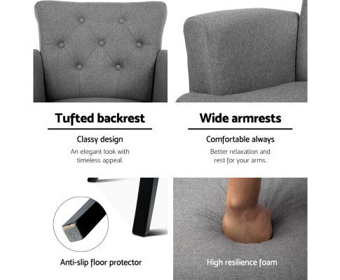 OPHELIA FABRIC LOUNGE ARMCHAIR - GREY