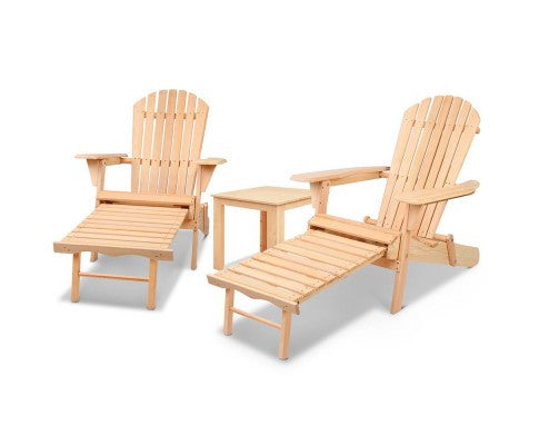 ORBITS 3 PIECE OUTDOOR WOODEN BEACH TABLE AND CHAIR SET - NATURAL