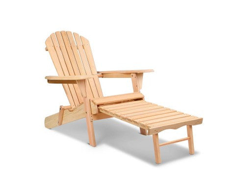ORBITS OUTDOOR WOODEN BEACH CHAIR WITH A SLIDE-OUT FOOTSTOOL - NATURAL