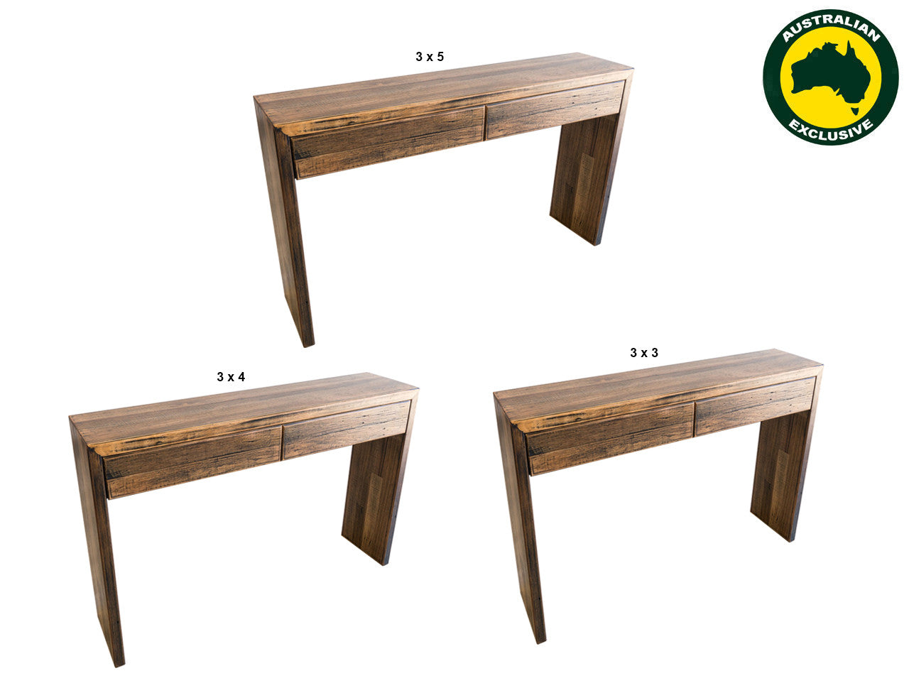 PALING / RETRO (AUSSIE MADE) CONSOLE / HALL TABLE WITH 2 DRAWER COLLECTION - ASSORTED STAINED COLOURS - STARTING FROM $499