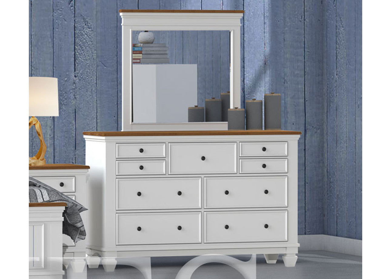 PLANTATION (CUSTOM MADE) 7 DRAWER DRESSING TABLE WITH MIRROR - 1800/900(H) x 1300(W) x 450(D) - ASSORTED COLOURS
