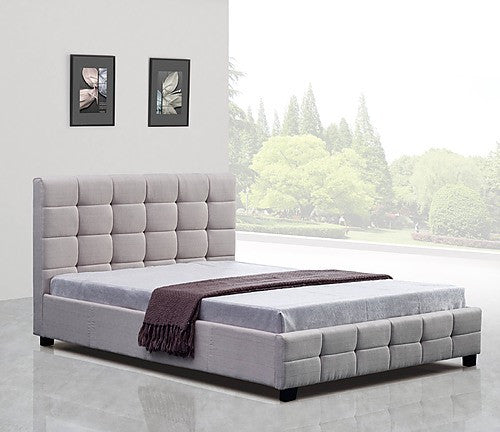 QUEEN ALFRIK LINEN FABRIC DELUXE BEDFRAME - BEIGE