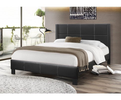 QUEEN BALTIMORE LEATHERETTE UPHOLSTERED BED FRAME - LIGHT GREY