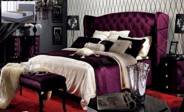 QUEEN CLEMENTI BUTTONED BED IN VELVET OR LINEN FABRIC OR LEATHERETTE UPHOLSTERY (MODEL: B016) - ASSORTED COLOURS