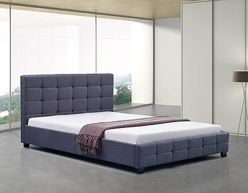 QUEEN DELUXE FABRIC LINEN TUFTED BED - GREY