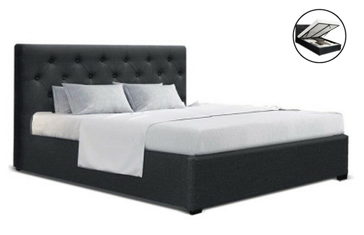 QUEEN GENEKO GAS LIFT STORAGE BED - CHARCOAL