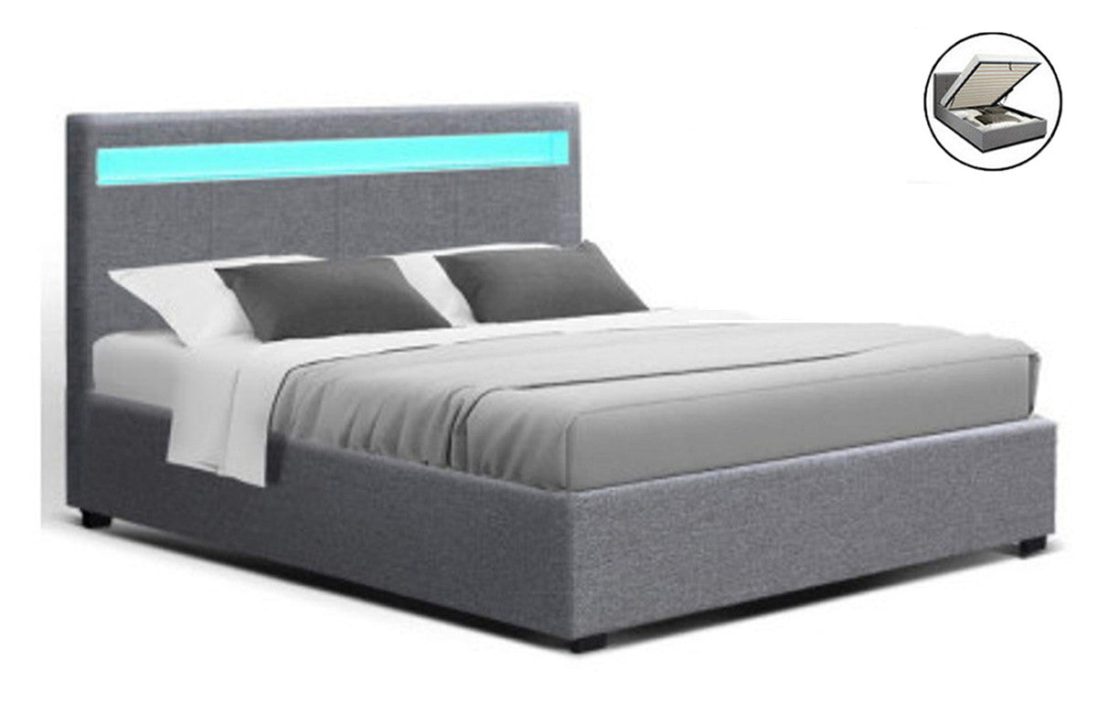 QUEEN JOHNCARL LEATHERETTE GAS LIFT STORAGE BED - GREY