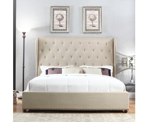 QUEEN PARIS LINEN FABRIC BED - BEIGE