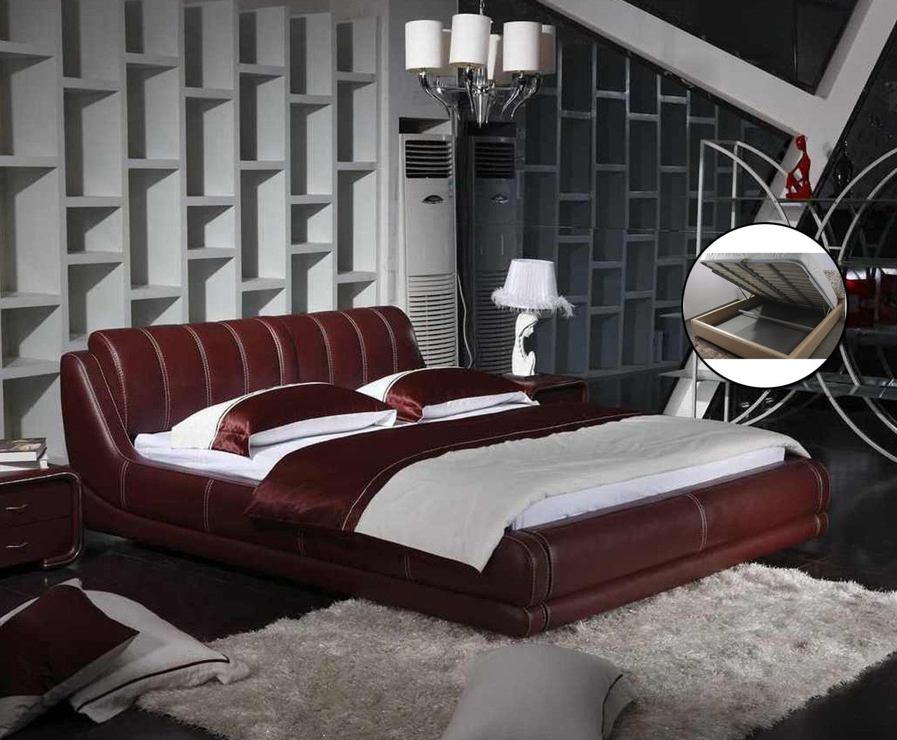 QUEEN RYDELL LEATHERETTE BED (A9038) WITH GAS LIFT UNDERBED STORAGE - ASSORTED COLOURS
