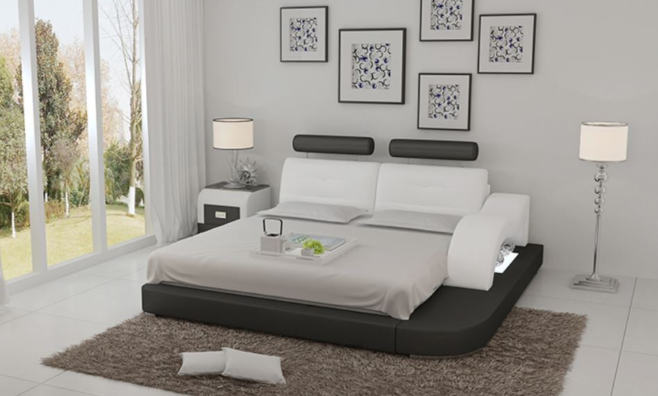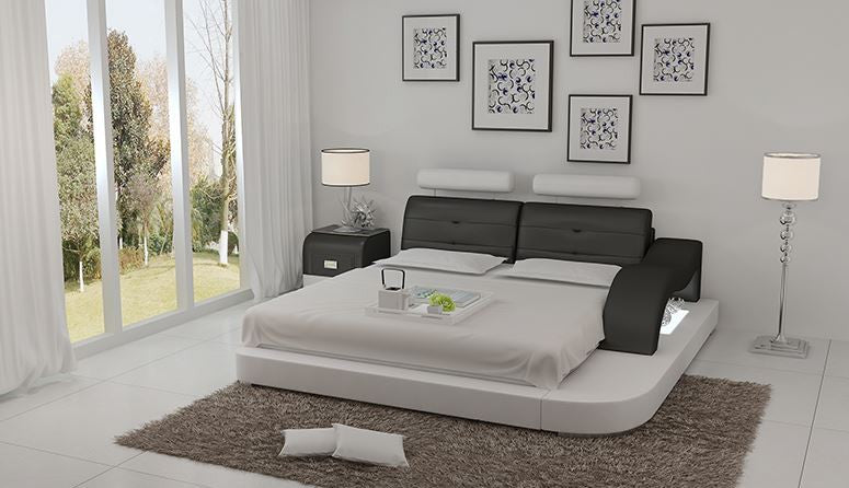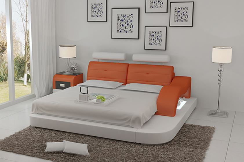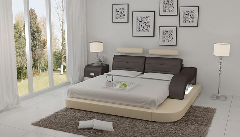 QUEEN SARATOGA LEATHER BED ( LB8802) - ASSORTED COLORS AVAILABLE IN DIFFERENT LEATHERS (COLOUR BOARD ATTACHED IN IMAGE SECTION)