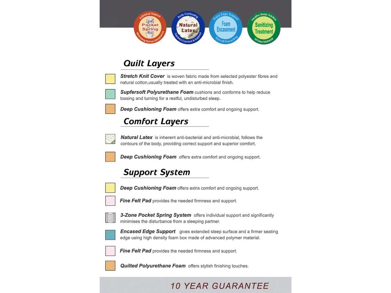 QUEEN TREASURE EUROTOP POCKET SPRING + LATEX + 360° BOX - FIRM