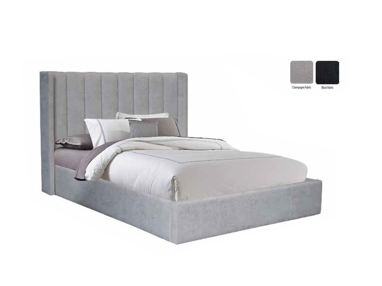 QUEEN WARRENTON FABRIC BED - BLACK (PICTURED IN CHAMPAGNE)
