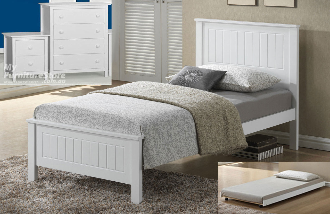 QUINCY SINGLE OR KING SINGLE 3 PIECE BEDROOM SUITE (WS-1301) INCLUDING SINGLE UNDER BED TRUNDLE - WITH KADO CASE GOODS - WHITE