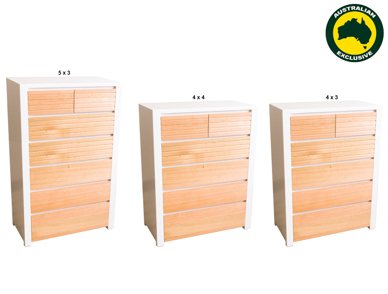 QUINN (AUSSIE MADE) TALLBOY COLLECTION - ASSORTED PAINTED / STAINED COLOURS - STARTING FROM $1499