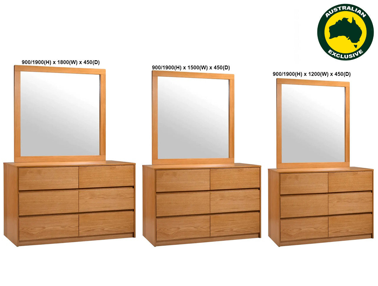 REGINALD (AUSSIE MADE) DRESSING TABLE WITH MIRROR COLLECTION - TASSIE OAK COMBINATION - ASSORTED STAINED COLOURS - STARTING FROM $1999