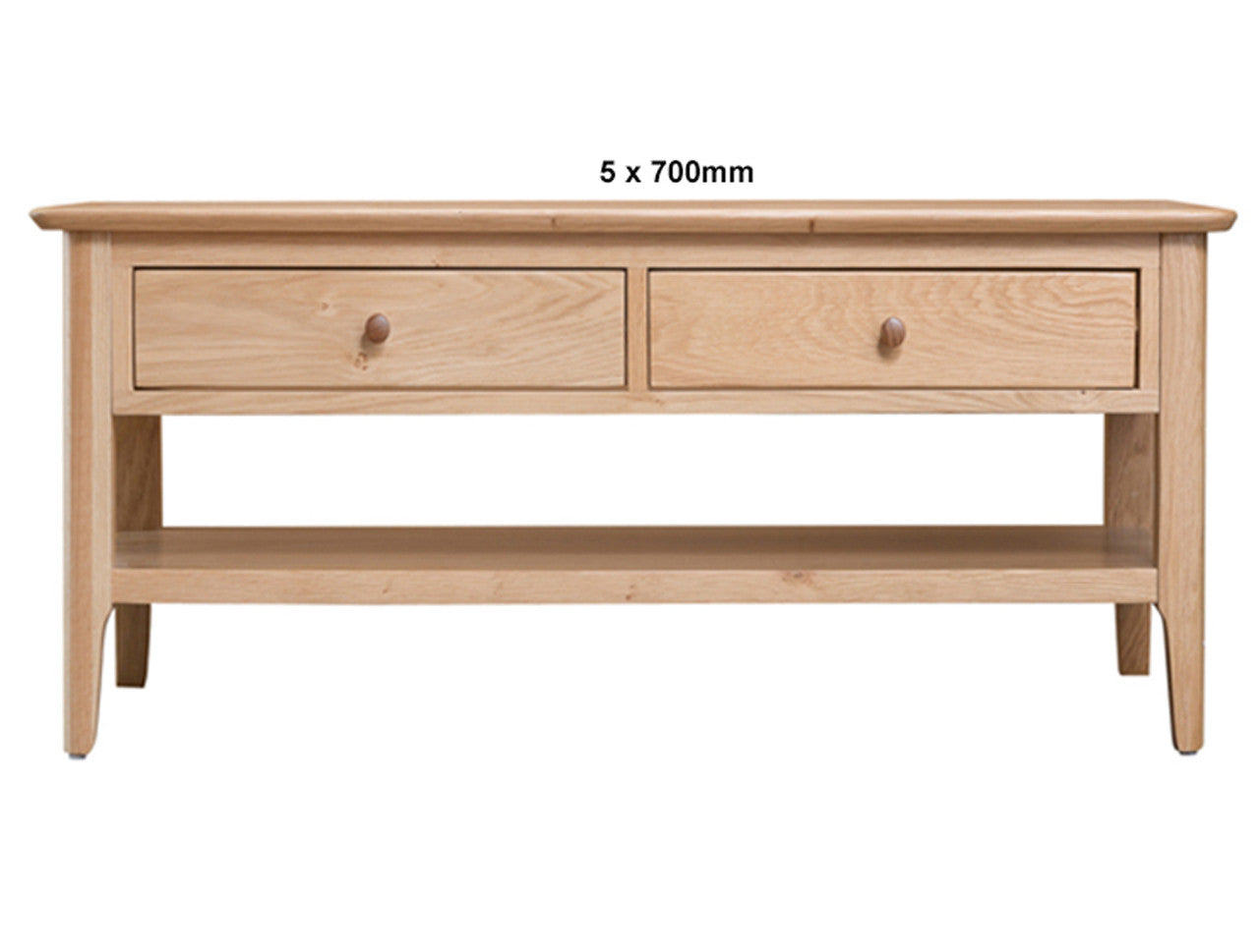 ROBINHOOD (AUSSIE MADE) COFFEE TABLE WITH 2 DRAWERS & MAGAZINE RACK COLLECTION - ASSORTED STAINED COLOURS - TASSIE OAK COMBINATION - STARTING FROM $799