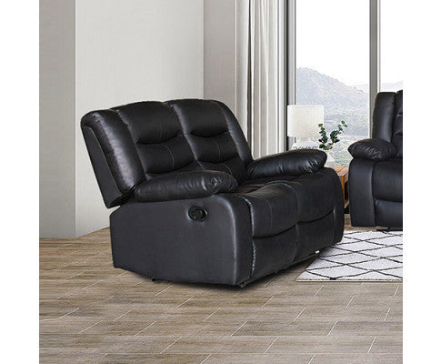 ROCKY 2 SEATER SEATER PU LEATHER RECLINER - BLACK
