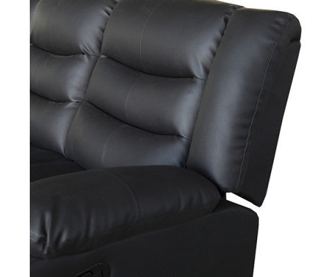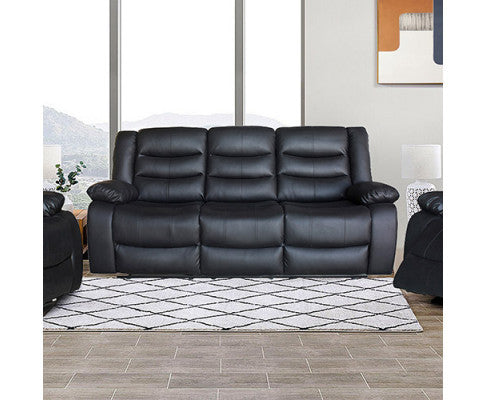 ROCKY 3 SEATER PU LEATHER RECLINER - BLACK