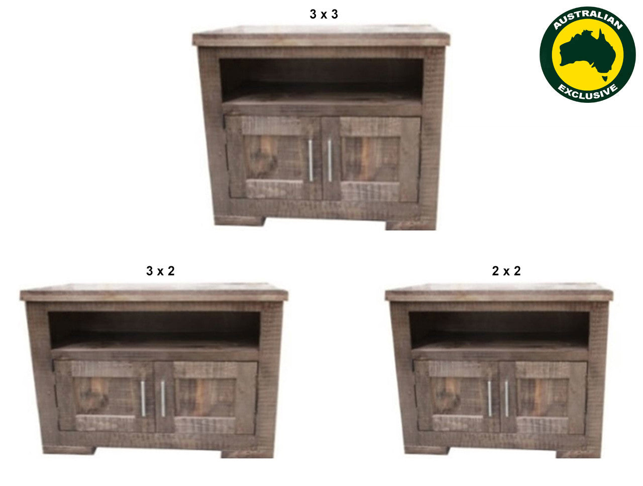 RUSTIC (AUSSIE MADE) 2 DOOR TV UNIT COLLECTION - ASSORTED STAINED COLOURS - STARTING FROM $399
