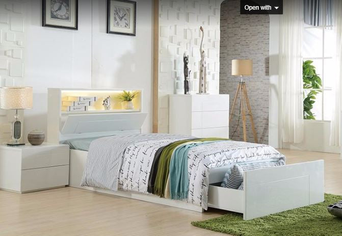 SINGLE EMERTON (MODEL 4-5-12-20-1) - SIDE OPEN GAS LIFT (REVERSIBLE) WITH END DRAWER STORAGE BED (MODEL:LS-081S) - HIGH GLOSS WHITE