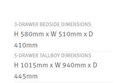 - Tallboy has 5 drawers.