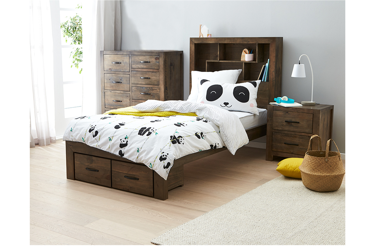 SINGLE OR KING SINGLE GREELY (AUSSIE MADE) 3 PIECE (BEDSIDE) BEDROOM SUITE - ASSORTED STAINED COLOURS