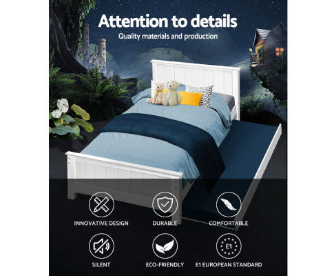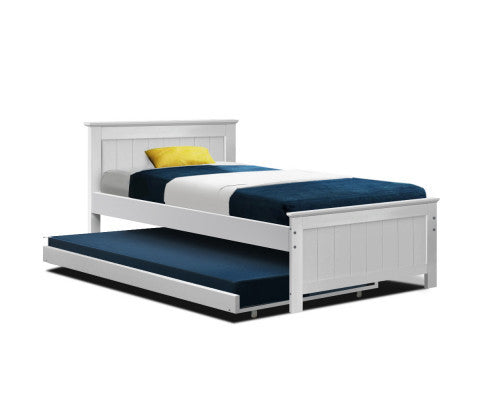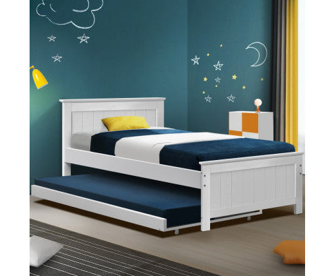 SINGLE QUINNIE BED WITH PULL OUT SINGLE TRUNDLE - WHITE