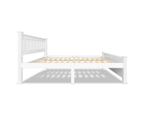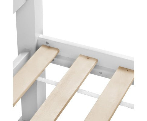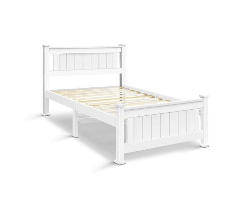 SINGLE TAN SOLID TIMBER BED FRAME - WHITE
