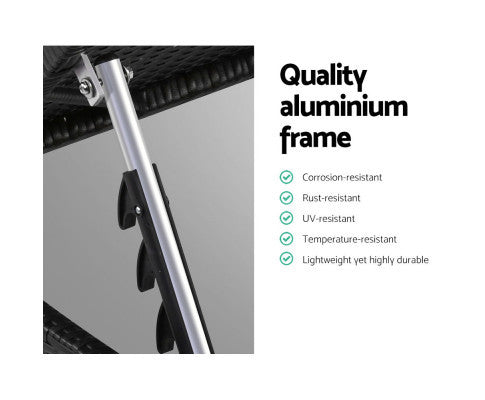 MATERIAL: PE Wicker/ Pillow: Waterproof fabric.