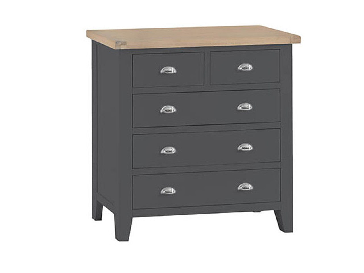 SPENCER (TT-2O3-CH) 5 DRAWER SPLIT TOP TALLBOY - 950(H) X 900(W) - CHARCOAL / LIGHT OAK (2 TONE)