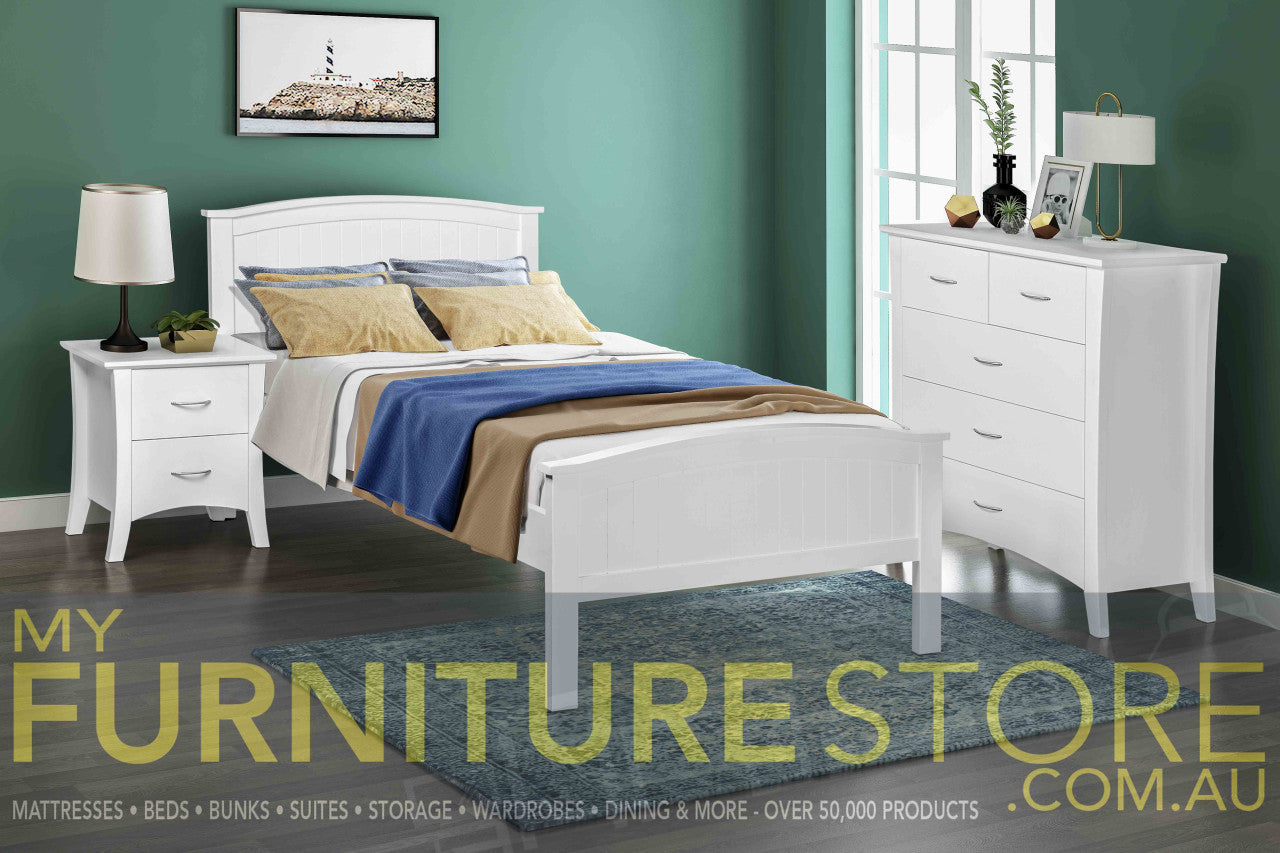 STELLA PANEL SINGLE OR KING SINGLE 3 PIECE BEDROOM SUITE WITH SAVANNAH CASE GOODS - WHITE