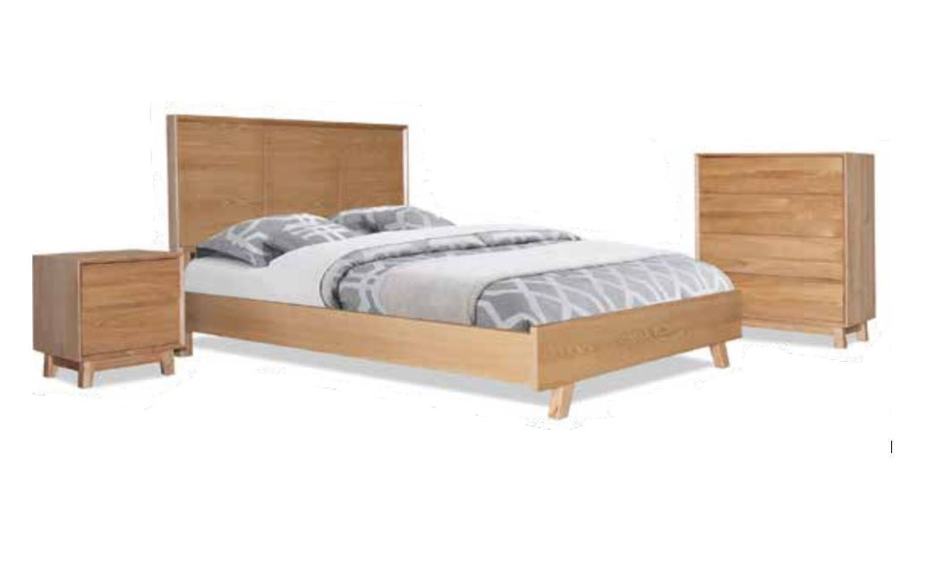 SUMMIT QUEEN 4 PIECE HARDWOOD TALLBOY BEDROOM SUITE - LIGHT OAK
