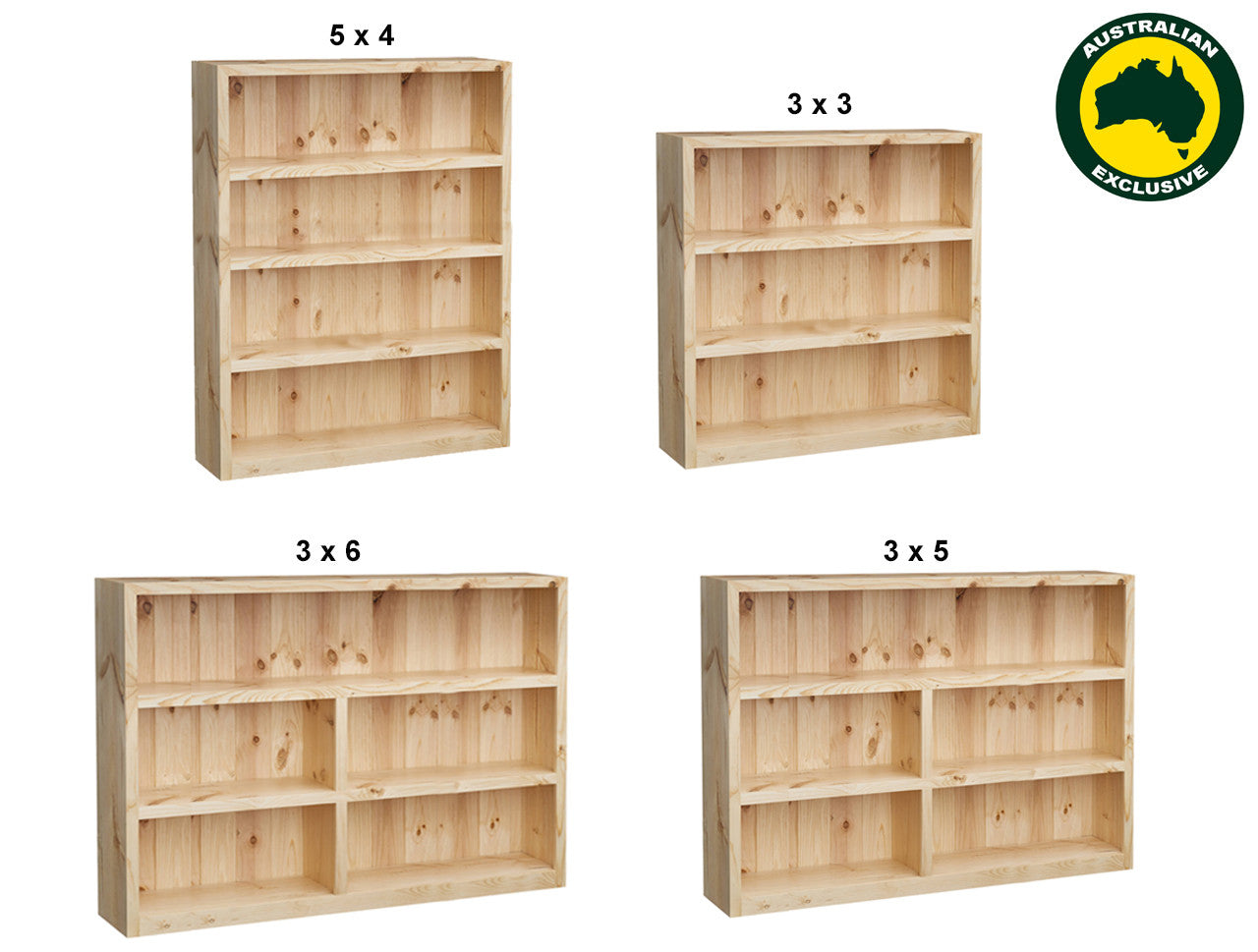 SUSAN (AUSSIE MADE) STANDARD LOWLINE BOOKCASE WITH 40MM FACINGS COLLECTION - ASSORTED STAINED COLOURS - STARTING FROM $399