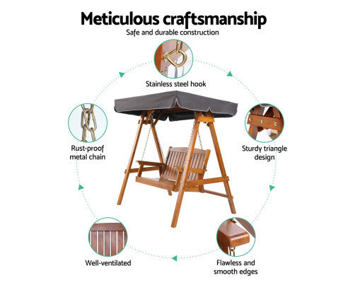 TAYLOR OUTDOOR WOODEN 2 SEATER CANOPY SWING CHAIR - TEAK