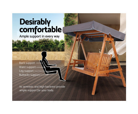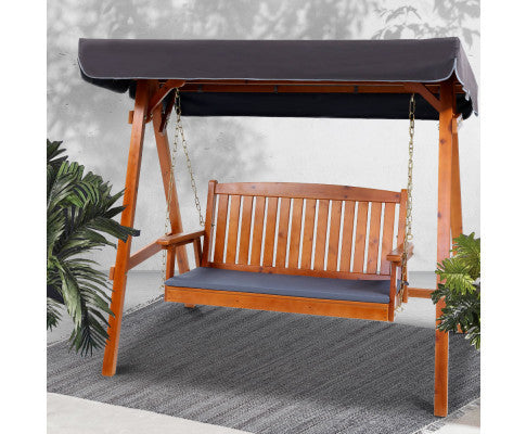 TAYLOR OUTDOOR WOODEN 3 SEATER CANOPY SWING CHAIR - TEAK