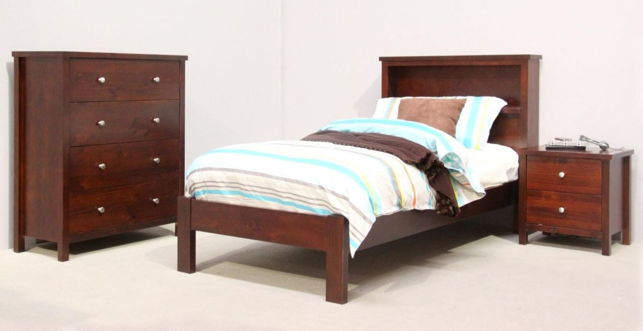 BEDROOM SUITE CONSISTS OF: 1 x Bed ; 1 x Bedside Table ; 1 x Tallboy.