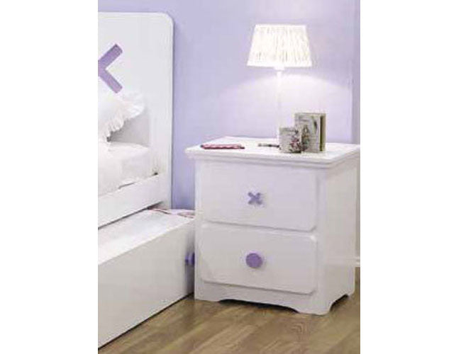 TIC-TAC-TOE 2 DRAWER BEDSIDE TABLE - SNOW / BLUE OR SNOW / LILAC