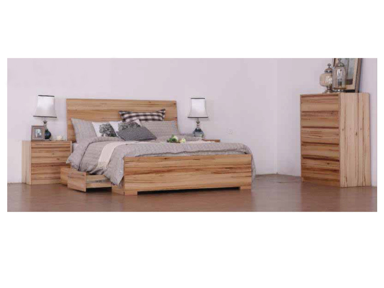 TREMONTON QUEEN 4 PIECE (TALLBOY) BEDROOM SUITE WITH 2 UNDERBED STORAGE DRAWERS - MESSMATE