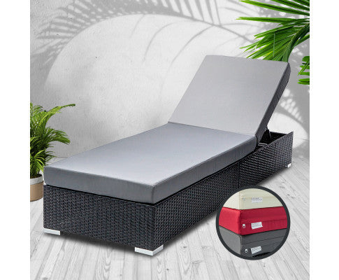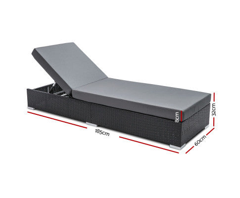 VERENA OUTDOOR SUN LOUNGE WITH CUSHION - BLACK