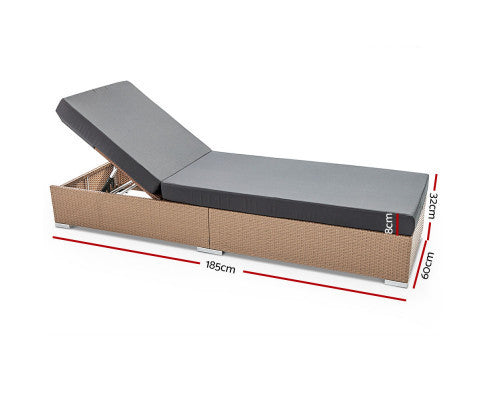 VERENA OUTDOOR SUN LOUNGE WITH CUSHION - NATURAL BROWN
