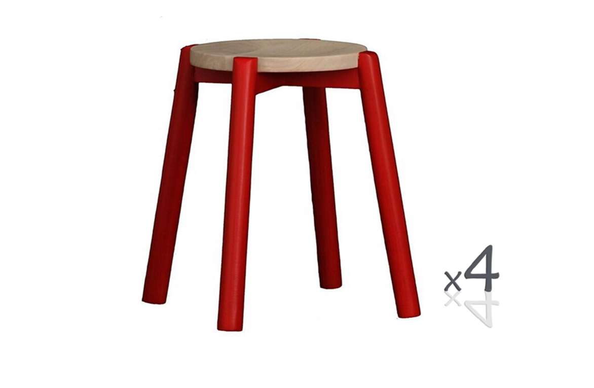 WILLOW (BR048ROWSRD) WOODEN ROUND BARSTOOL / KITCHEN BENCH (4 UNITS IN A BOX) - SEAT: 480(H) - RED / WASHED