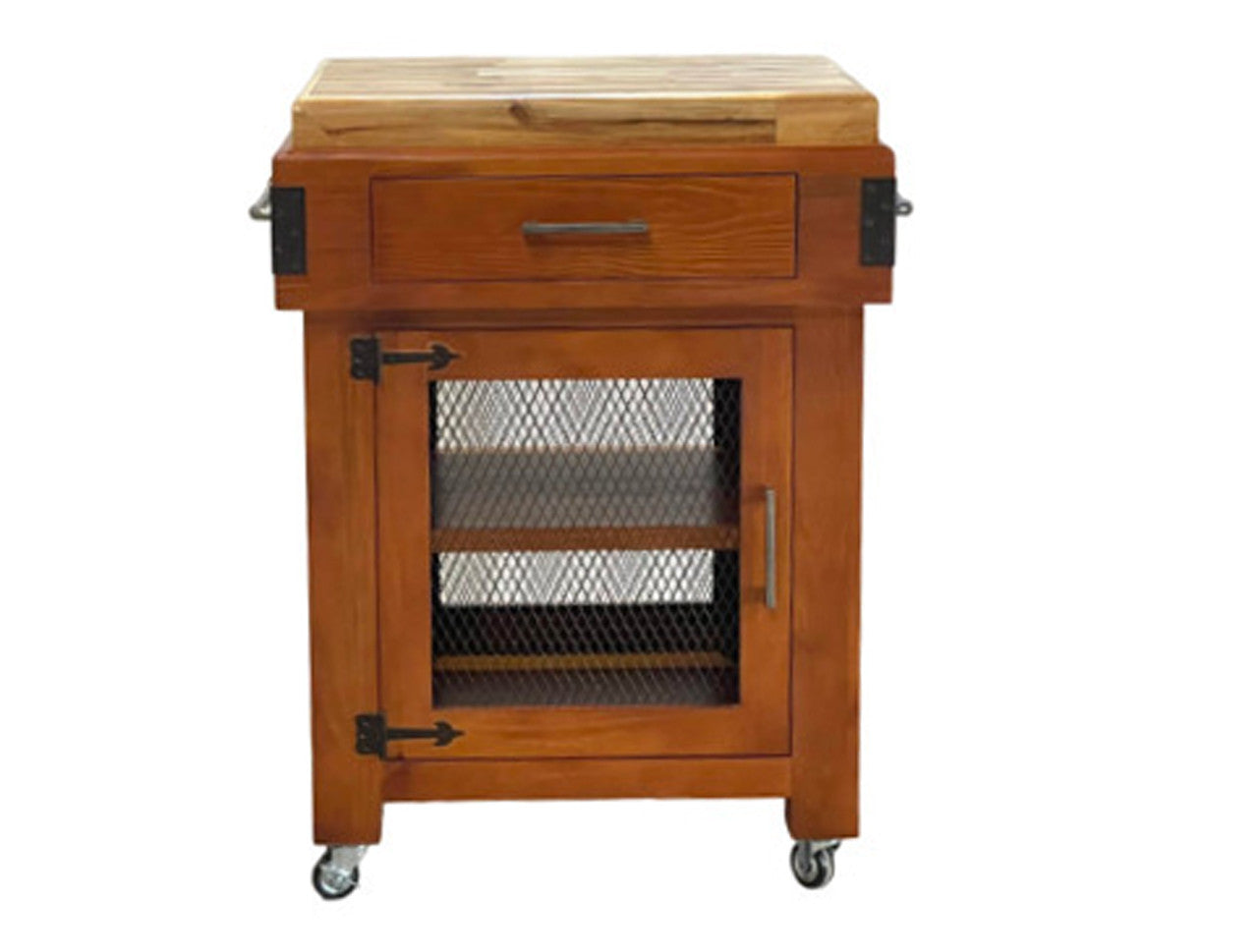 YEDAH BUTCHERS BLOCK WITH 1 DOOR & 1 DRAWER - 885(H) x 700(W) x 560(D) - WALNUT